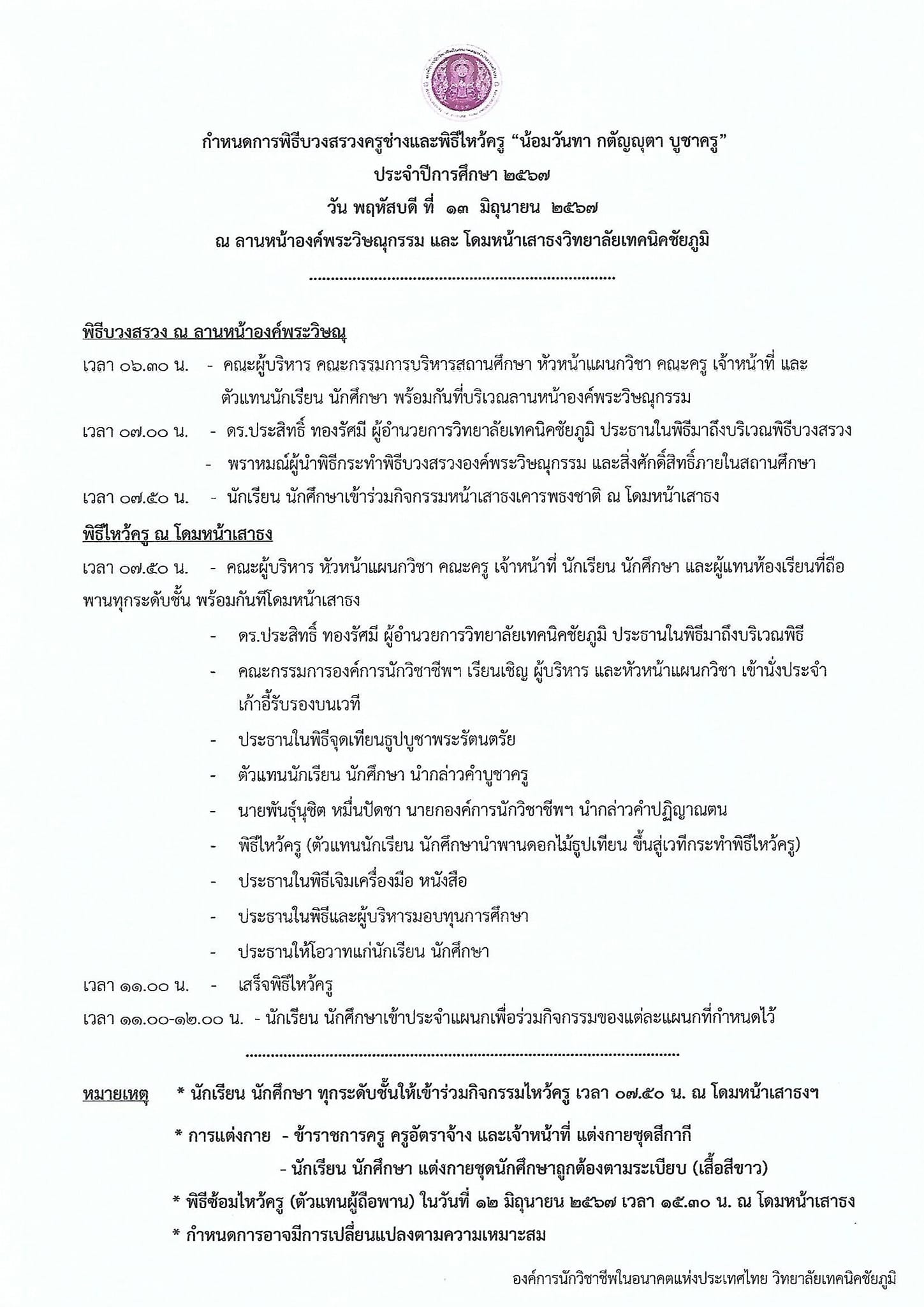 ข่าวประชาสัมพันธ์ทั่วไปประกาศวิทยาลัยฯ กำหนดพีธีบวงสรวงครูช่างและพิธีไหว้ครู ประจำปีการศึกษา 2567 7 มิถุนายน 2024 root