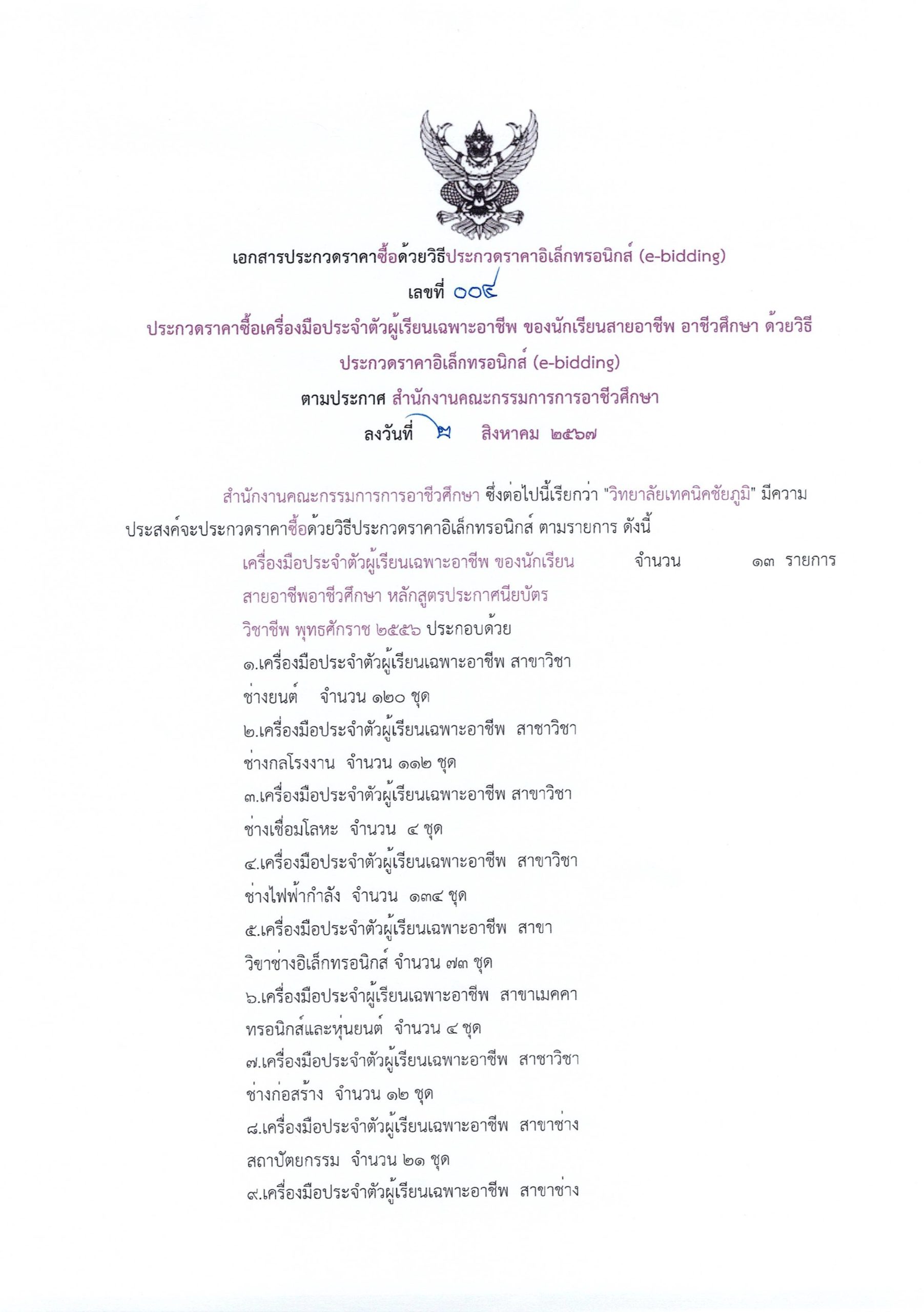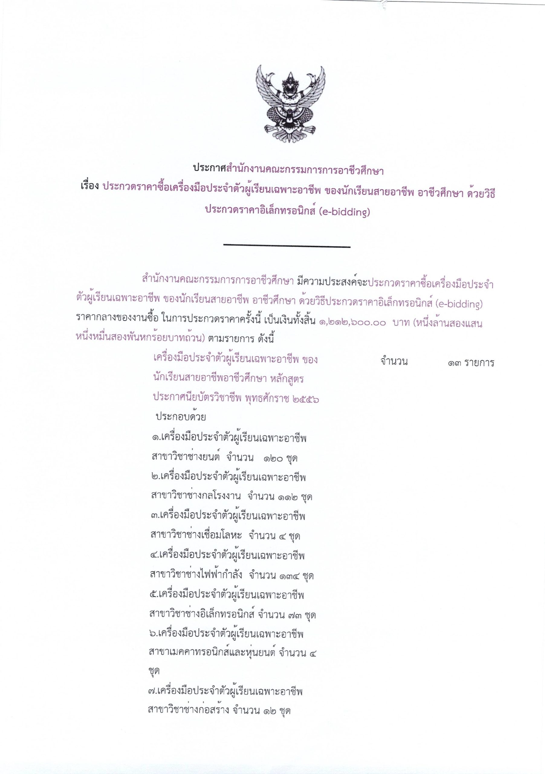 ข่าวจัดซื้อจัดจ้าง ประกวดราคา ประกวดราคาซื้อเครื่องมือประจำตัวผู้เรียนเฉพาะอาชีพฯ 3 สิงหาคม 2024 root