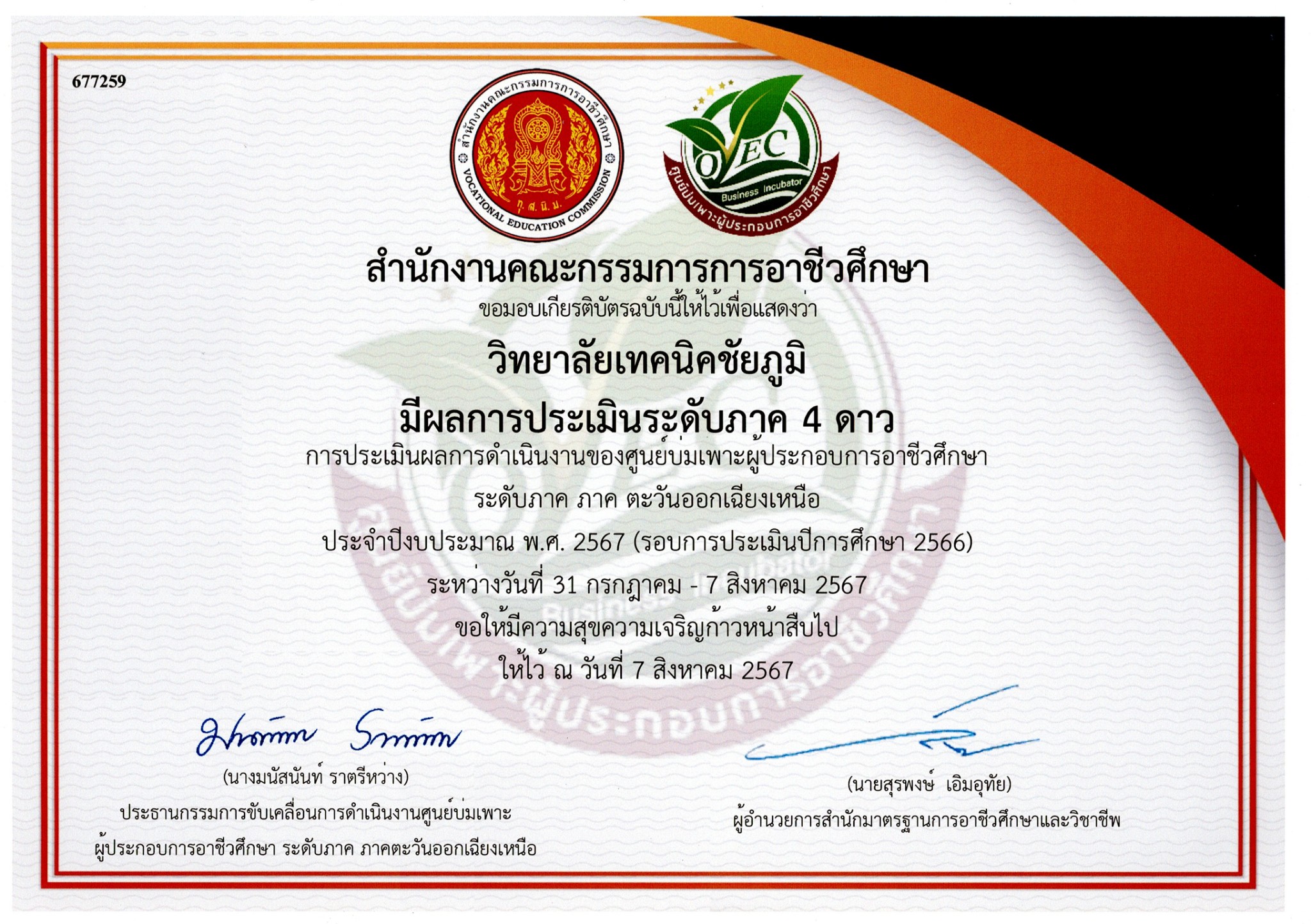 ศูนย์บ่มเพาะผู้ประกอบการอาชีวศึกษา เกียรติบัตรการประเมินศูนย์บ่มเพาะผู้ประกอบการอาชีวศึกษา ระดีบ ภาค ตะวันออกเฉียงเหนือ ประจำปีงบประมาณ 2567 (รอบการประเมินปีการศึกษา 2566) 7 สิงหาคม 2024 root