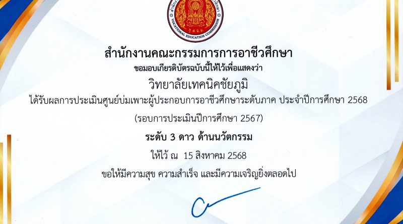 ศูนย์บ่มเพาะผู้ประกอบการอาชีวศึกษา 15 กันยายน 202517 กันยายน 2025 root เกียรติบัตรการประเมินศูนย์บ่มเพาะผู้ประกอบการอาชีวศึกษา ระดีบ ภาค ตะวันออกเฉียงเหนือ ประจำปีงบประมาณ 2568 (รอบการประเมินปีการศึกษา 2567) Read More